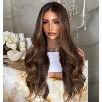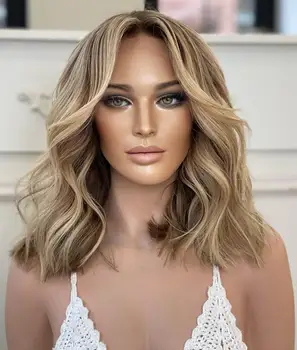 12A Grade European Smooth Human Hair Topper Blonde Highlight Color Water Wave Virgin Remy Hair Silk Base Toupee